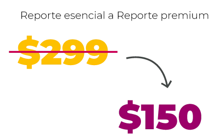 Si adquiriste un reporte esencial ($149 MXN), conviértelo en un reporte premium ($299 MXN) pagando solo la diferencia.