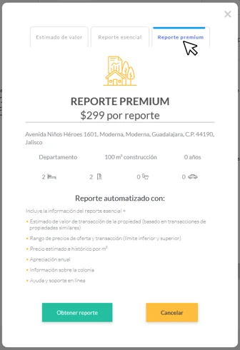 aparecerá la opción para comprar un "Reporte premium" de $299 pesos.