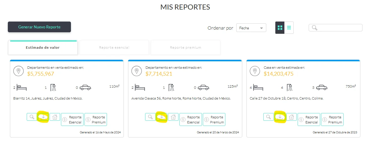 En caso de requerir información de una propiedad cuyo reporte tenga más de 6 meses, se recomienda generar un nuevo reporte debido a que el mercado inmobiliario está en constante evolución.